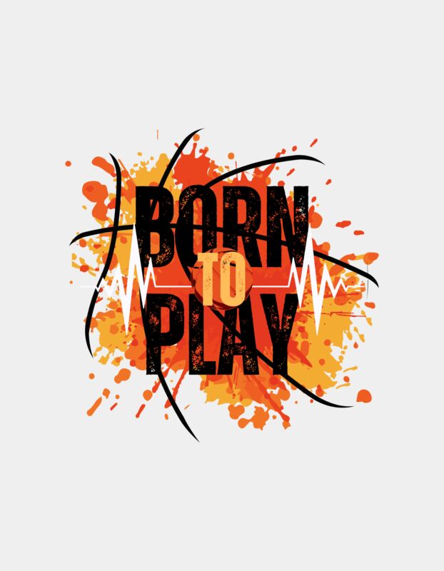 Black Orange Yellow Modern Born To Play Basketball T Shirt