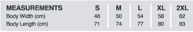 | XS | S | M | L | XL | 2XL | 3XL | |